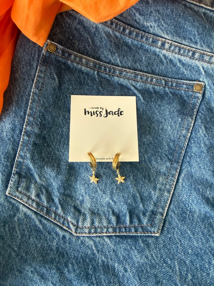 Wavy hoop earrings + Small starfish charms